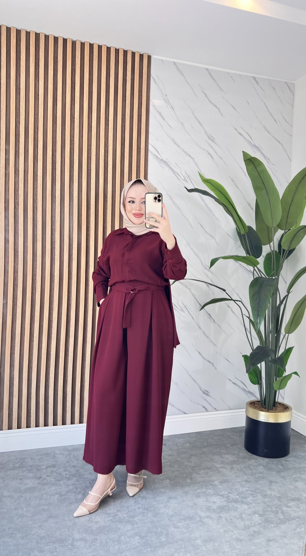 Önden düğme detaylıdır seyyar kemer sırt bölgesinde vücudu sarabilmesi için lastik detay vardır