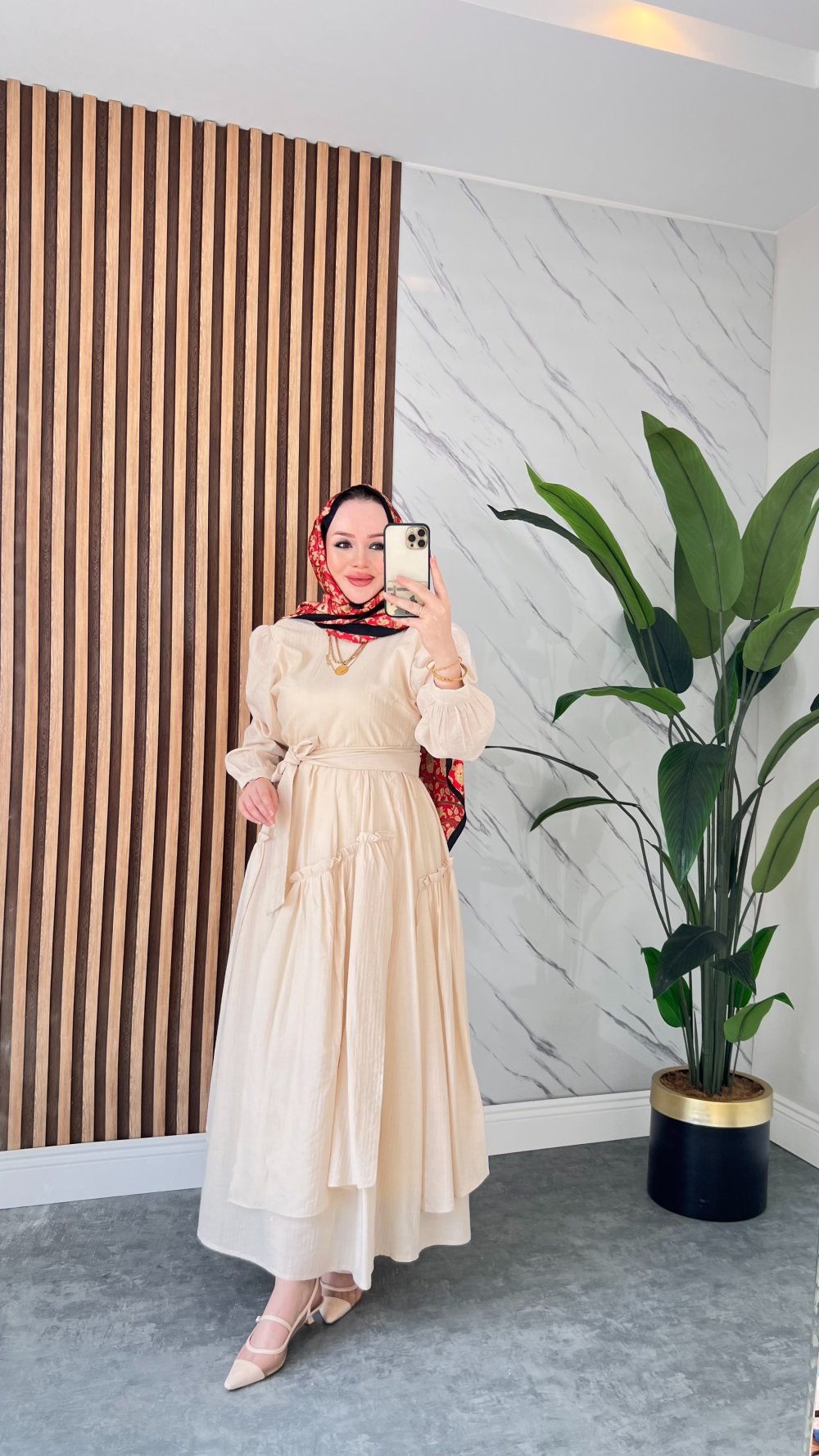 Yeni sezonun trend parçalarından biri olan bu tesettür elbise, modern tasarımı ve zarif detaylarıyla öne çıkıyor. Hafif dokulu kumaşı sayesinde gün boyu ferahlık sağlarken, kat kat volan detayı elbiseye hareketli ve şık bir görünüm kazandırıyor. Bel kısmındaki kuşak detayı, vücut formunu zarifçe ortaya çıkarırken uzun kollu tasarımı sayesinde dört mevsim rahatlıkla kullanılabilir.