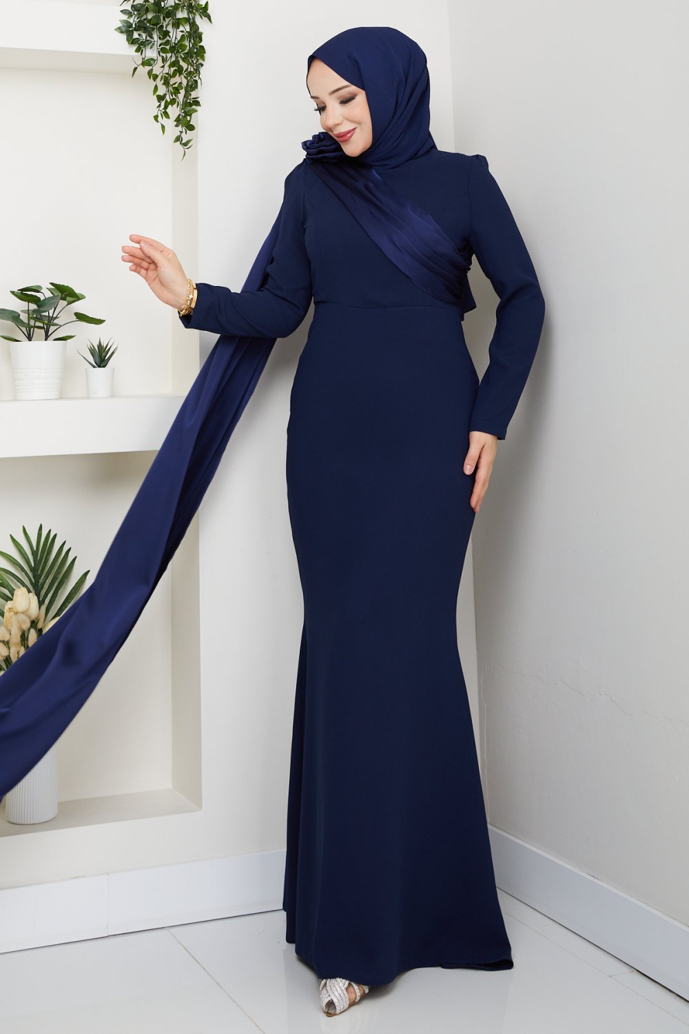 PERİ TESETTÜR ABİYE ELBİSE Lacivert