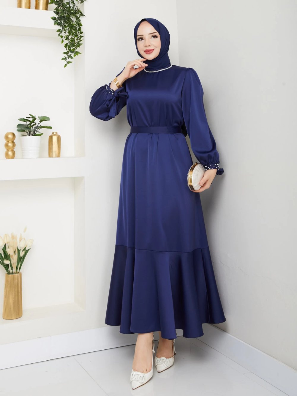 tesettür elbise, uzun tesettür elbise, bisiklet yaka uzun elbise, yakasında inci ve boncuk detayları olan elbise, inci işçilikli yakalı tesettür elbise, kolları bağlamalı detaylı elbise, kol uçlarında inci ve boncuk süslemeli elbise, seyyar kuşaklı tam kalıp tesettür elbise, fırfırlı etek uçlu saten elbise, birinci sınıf saten kumaştan özel gün elbisesi, sade ve zarif tesettür elbise, baskısız düz renk uzun elbise, düğün ve nişan için ideal tesettür elbisesi, nikah törenlerine uygun şık saten elbise, mezuniyet törenleri için kadın tesettür elbisesi, doğum günü kutlamalarına uygun uzun tesettür elbise, rahat kesim ve konforlu saten elbise, şıklık ve sadeliği bir arada sunan tesettür elbise modeli, kadınlar için kaliteli işçilikli tesettür elbise, kuşaklı ve bağcıklı kol detaylı tesettür elbise, özel tasarım fırfırlı alt uçlu uzun elbise, modern ve klasik çizgide tesettür elbise, kalıpları tam ve vücuda oturan saten elbise, zarif süslemelerle donatılmış kadın tesettür elbisesi, günlük ve özel gün kombinlerine uygun sade saten elbise, seyyar kuşaklı kadın elbisesi, incili ve boncuk işlemeli tesettür elbise, uzun kollu bağlamalı detaylı saten elbise, feminen ve asil görünüm sağlayan tesettür elbise, rahat ve şık kadın kıyafeti, yaka detaylarında incili zarafet, kol detaylarında ince işçilik, fırfırlı uçlar ile hareketlenen tesettür elbise